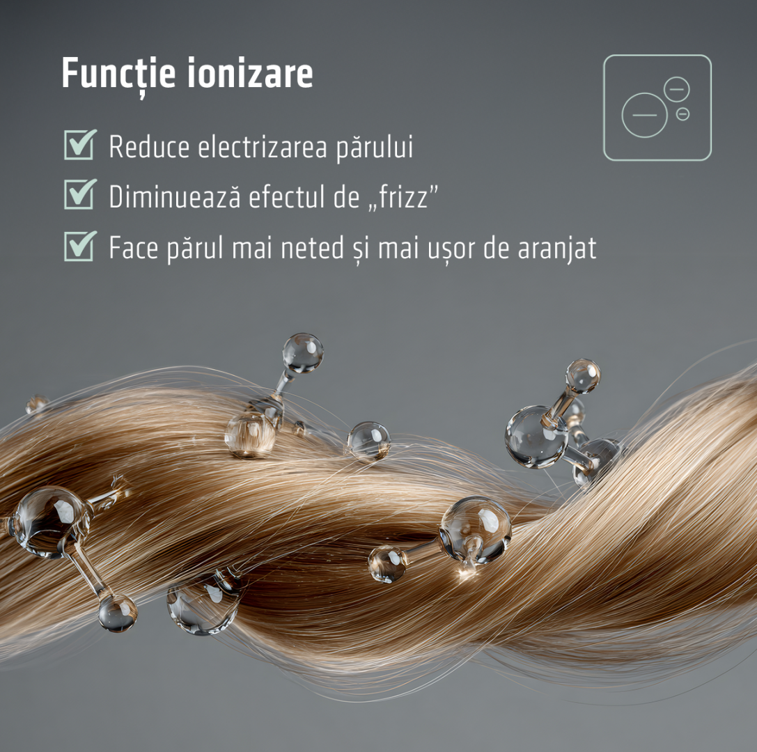 | Functii | Ionizare Functie aer rece Motor BLDC Maner pliabil |